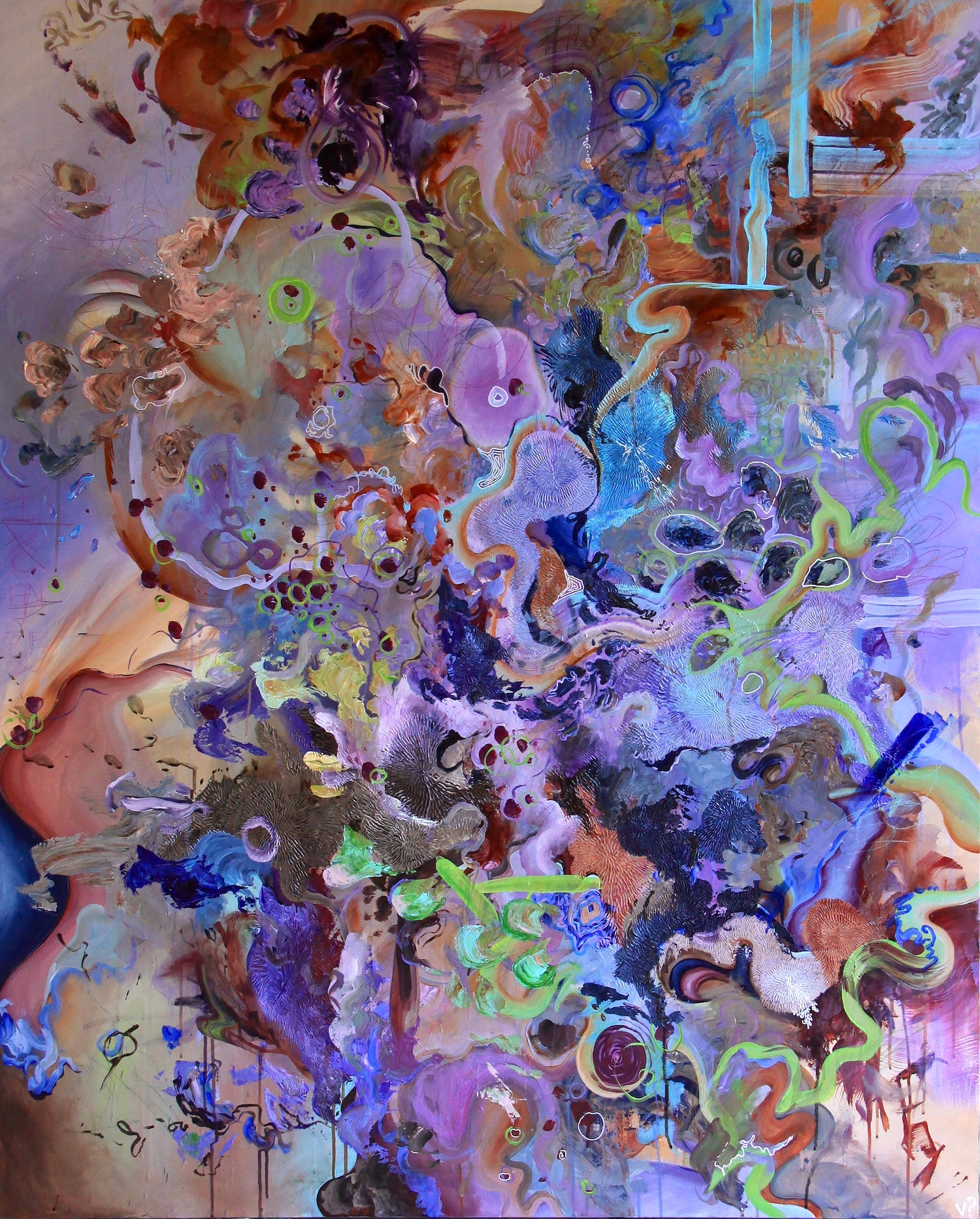 v? almost always works with Acrylic paint and water. She will often experiment with an addition of mixed media such as oil pastels, pencil, moulding paste and spray paint.